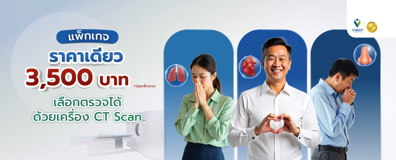 การตรวจ CT Scan ถือเป็นหนึ่งในเทคโนโลยีทางการแพทย์ที่ทันสมัย ช่วยให้แพทย์สามารถวินิจฉัยความผิดปกติของอวัยวะภายในร่างกายได้อย่างละเอียด แม่นยำ และรวดเร็ว เหมาะสำหรับผู้ที่ต้องการตรวจสุขภาพเชิงลึกหรือผู้ที่มีอาการที่แพทย์สงสัยว่าต้องได้รับการตรวจเพิ่มเติม ด้วยเครื่องมือที่ทันสมัยและทีมแพทย์ผู้เชี่ยวชาญที่คอยให้คำปรึกษาอย่างใกล้ชิด โรงพยาบาลวิมุตจึงพร้อมมอบบริการตรวจ CT Scan ที่ครอบคลุมทุกขั้นตอน ตั้งแต่การเตรียมตัว การตรวจ ไปจนถึงการติดตามผล ทำให้ผู้เข้ารับบริการมั่นใจในความปลอดภัยและความถูกต้องของผลตรวจ พร้อมช่วยให้คุณดูแลสุขภาพได้อย่างรอบด้านและมั่นใจ