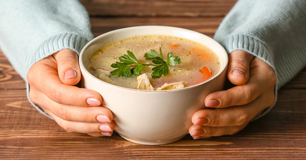 เมนูคลาสสิกยามป่วยอย่างซุปไก่ร้อนๆ ก็ช่วยแก้เจ็บคอได้ เพราะความร้อนและไอน้ำจากซุปช่วยให้ทางเดินหายใจโล่งขึ้น ให้ความชุ่มชื้นแก่ลำคอ ทั้งยังย่อยง่ายและให้สารอาหารที่จำเป็นต่อการฟื้นฟูร่างกาย เช่น โปรตีนจากไก่ และกรดอะมิโนซีสเตอีนที่อาจช่วยให้เสมหะเหลวขึ้น แต่แนะนำเลือกเป็นซุปไก่ใส ปรุงรสอ่อนๆ ไม่เผ็ดร้อน จะช่วยลดอาการระคายเคืองได้ดีที่สุด