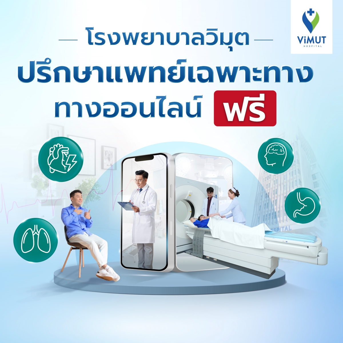 ในยุคที่ทุกบริการและธุรกรรมสามารถทำได้ทุกที่ทุกเวลา สำหรับบริการด้านการแพทย์ก็เช่นกัน รพ.วิมุตก้าวข้ามข้อจำกัด โดยการสร้างโรงพยาบาลบนโลกออนไลน์ด้วยบริการ Telemedicine ปรึกษาแพทย์ออนไลน์ ที่ผู้ป่วยสามารถรับคำแนะนำด้านสุขภาพผ่าน VDO Call ด้วยทีมแพทย์เฉพาะทางที่ครอบคลุมในทุกสาขา และมีเวลาให้คำปรึกษากับผู้ป่วยได้อย่างเต็มที่ ทำให้มีความเข้าใจในรายละเอียดของอาการเจ็บป่วยและสามารถวิเคราะห์โรคได้อย่างตรงจุด ซึ่งเหมาะสำหรับผู้ที่ไม่สะดวกเดินทางมาโรงพยาบาล ผู้ป่วยที่ต้องพบแพทย์เพื่อติดตามอาการอย่างต่อเนื่อง รวมไปถึงการนัดหมายแพทย์ล่วงหน้า เพื่อช่วยประหยัดเวลา ลดค่าใช้จ่ายในการเดินทาง และยังถือเป็นบริการที่ช่วยให้ผู้ป่วยได้รับการดูแลทางด้านการแพทย์อย่างทั่วถึง