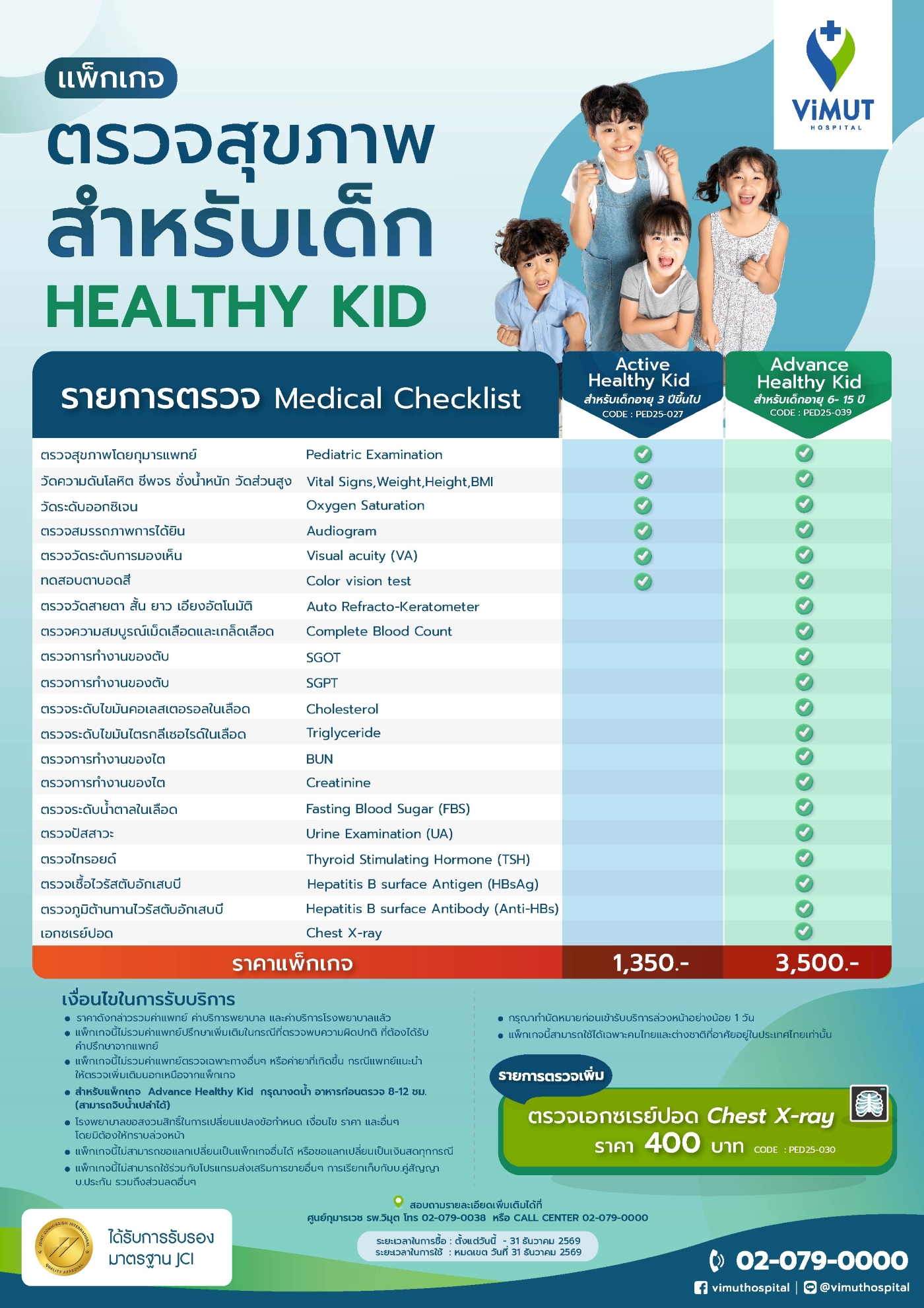 แพ็กเกจตรวจสุขภาพสำหรับเด็ก Advance Healthy Kid (สำหรับเด็กอายุ 6-15 ปี)