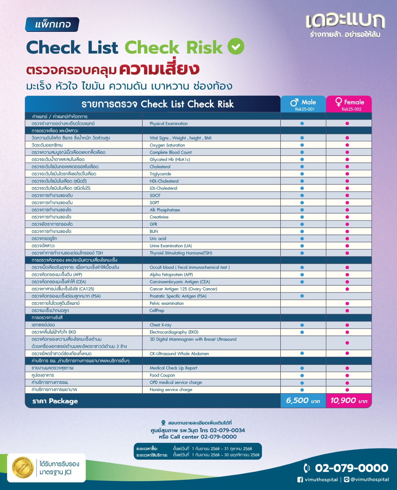 - สอบถามรายละเอียดเพิ่มเติมได้ที่ ศูนย์สุขภาพ รพ.วิมุต โทร 02-079-0034 หรือ Call center 02-079-0000