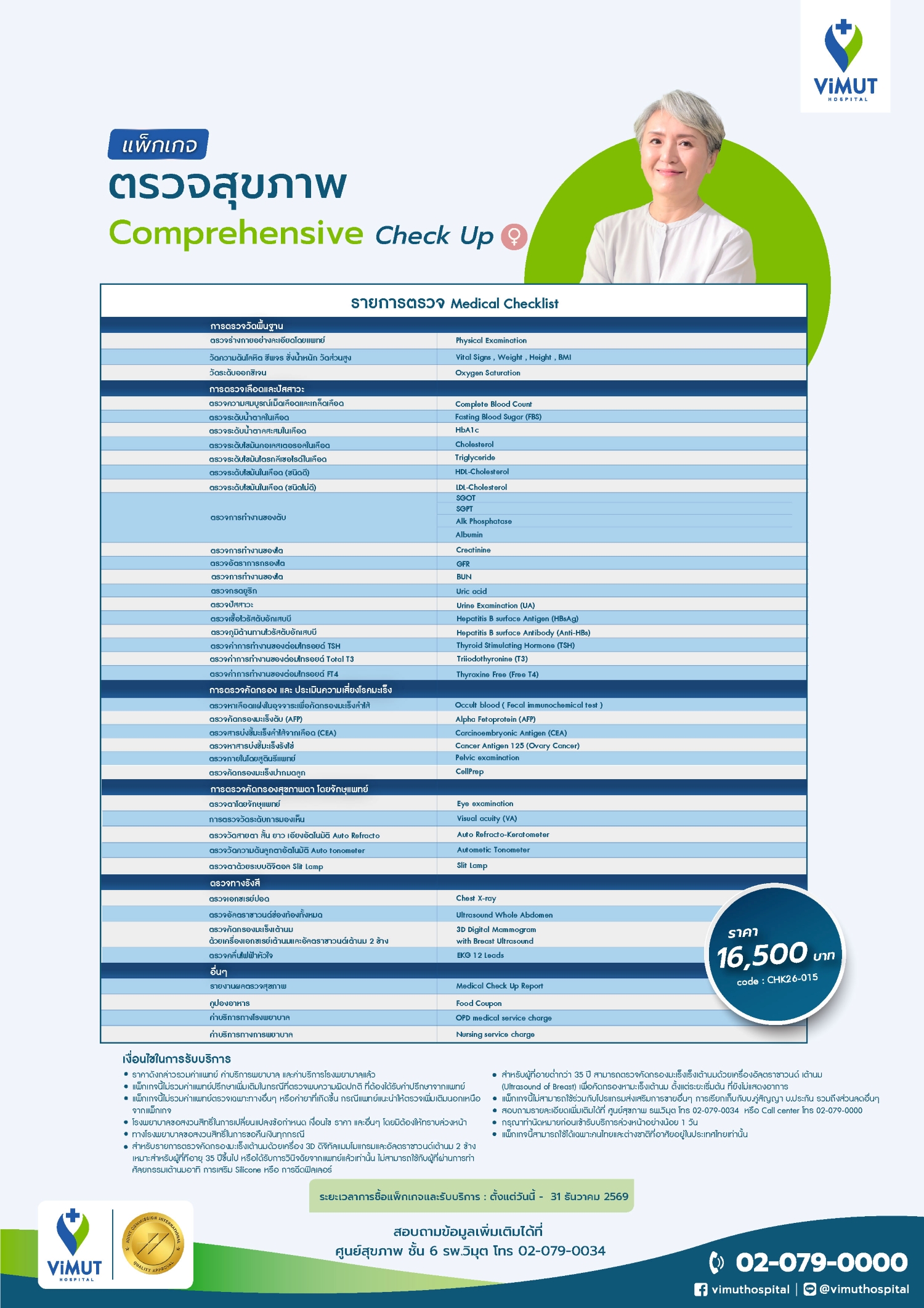 - สอบถามรายละเอียดเพิ่มเติมได้ที่ ศูนย์สุขภาพ รพ.วิมุต โทร 02-079-0034