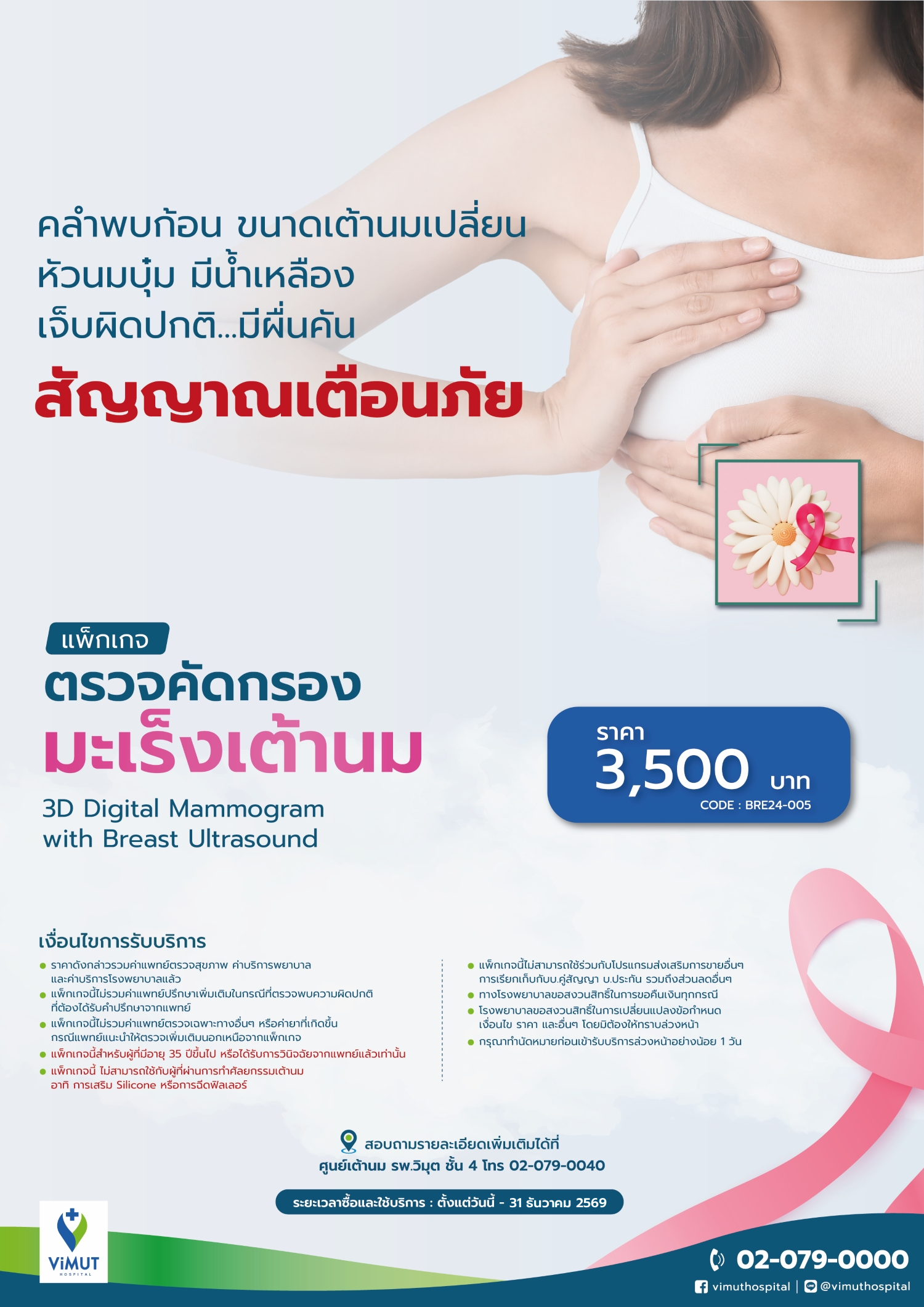 - สอบถามรายละเอียดเพิ่มเติมได้ที่ ศูนย์เต้านม ชั้น 4 เบอร์โทร 02-079-0040