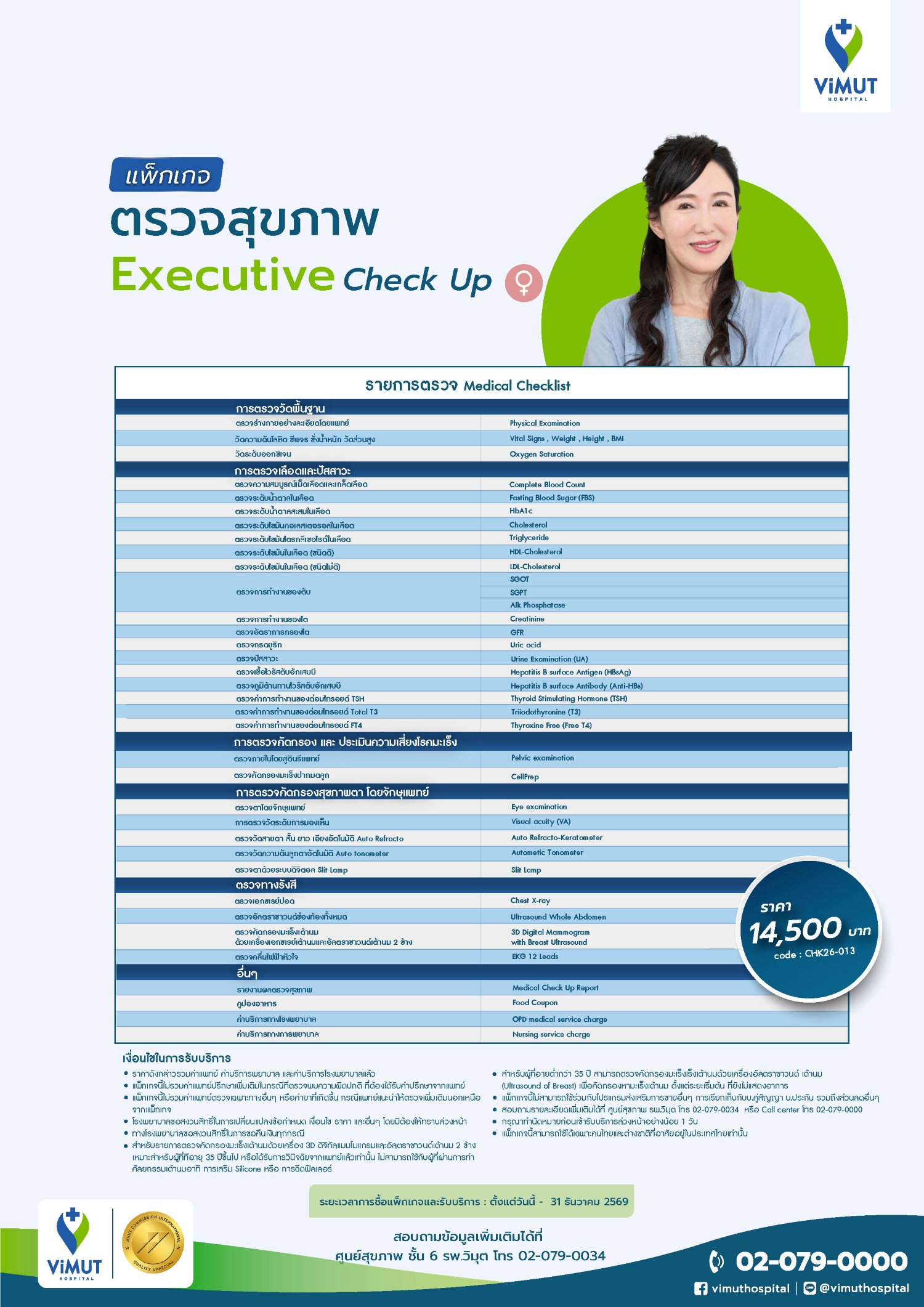 - สอบถามรายละเอียดเพิ่มเติมได้ที่ ศูนย์สุขภาพ รพ.วิมุต โทร 02-079-0034