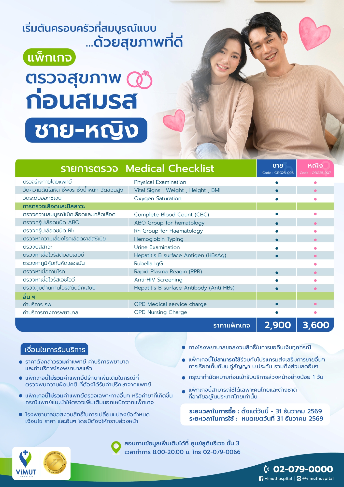 ไม่ใช่แค่เพื่อ “เช็กความพร้อมก่อนมีลูก” แต่คือการ สร้างความมั่นใจให้คู่ชีวิตว่าจะเริ่มต้นอย่างปลอดภัย แข็งแรง และวางแผนอนาคตร่วมกันได้ดียิ่งขึ้น