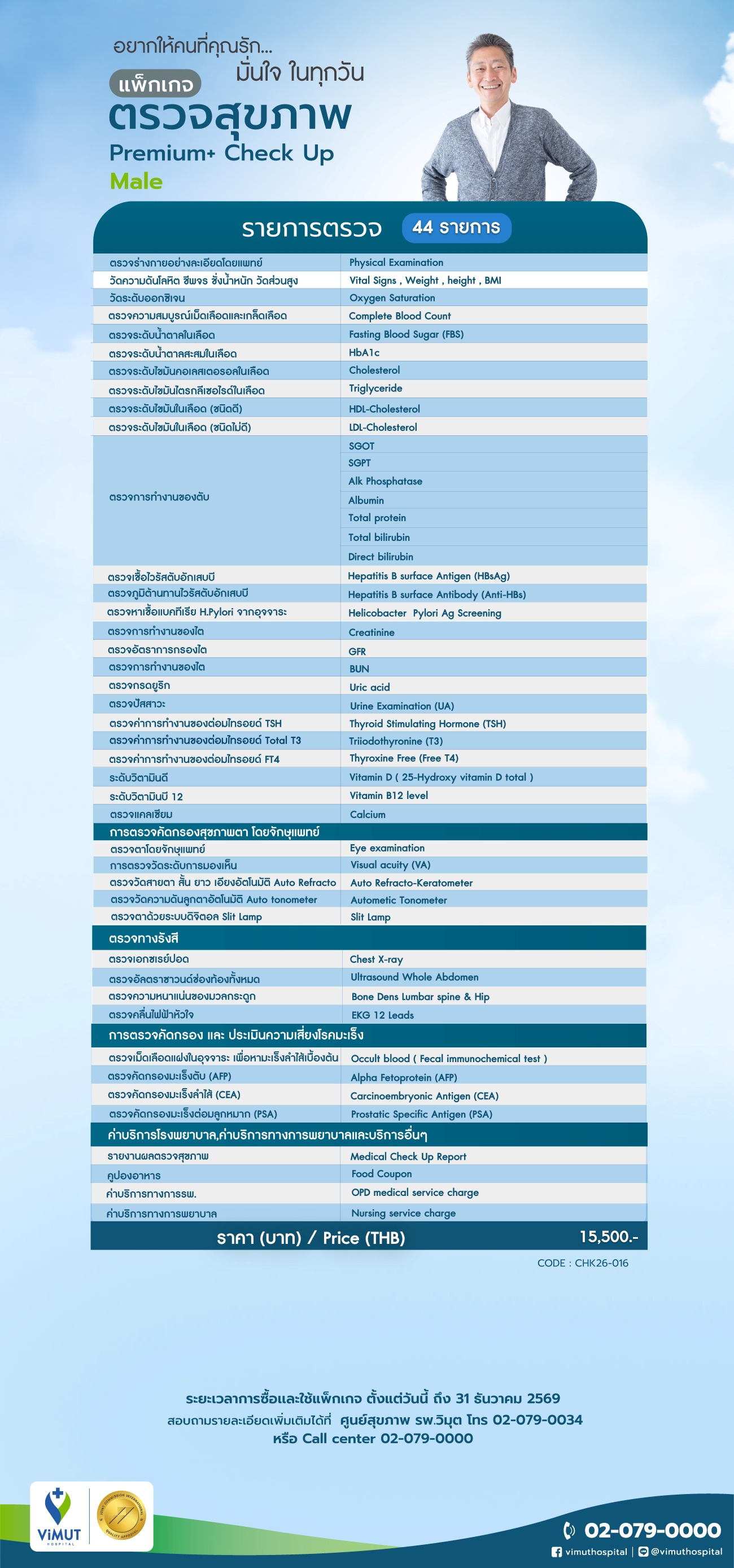 - สอบถามรายละเอียดเพิ่มเติมได้ที่ ศูนย์สุขภาพ รพ.วิมุต โทร 02-079-0034