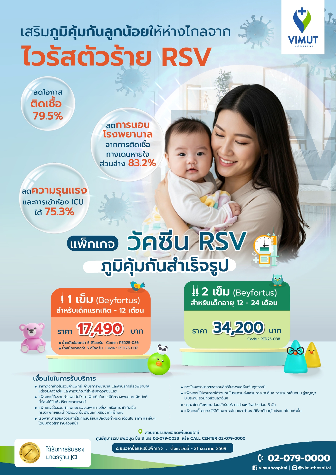 - สอบถามรายละเอียดเพิ่มเติมได้ที่ ศูนย์กุมารเวช รพ.วิมุต โทร 02-079-0038 หรือ Call center 02-079-0000