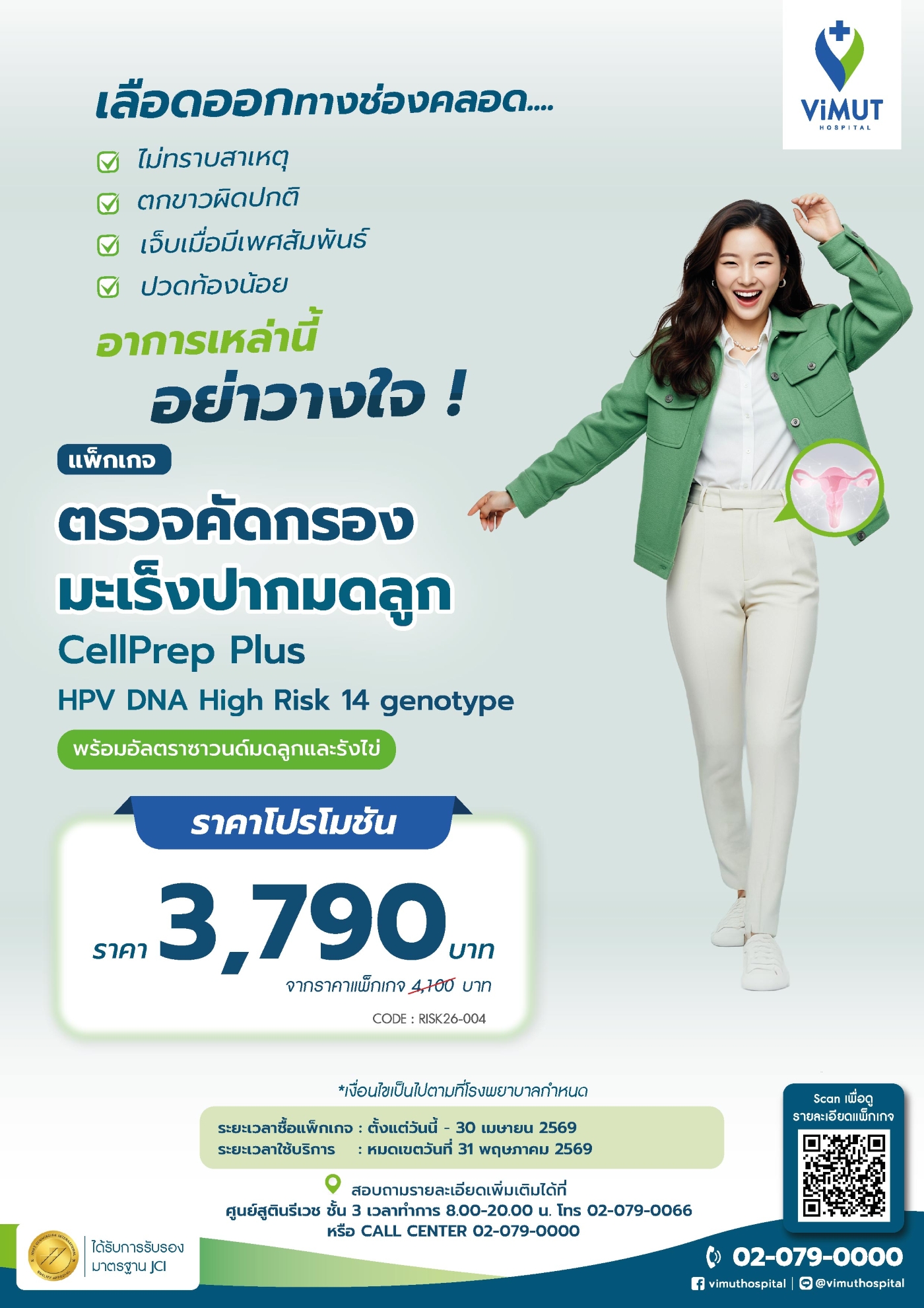 - สอบถามรายละเอียดเพิ่มเติมได้ที่ศูนย์สูตินรีเวช โทร 02-079-0066 หรือ Call center 02-079-0000