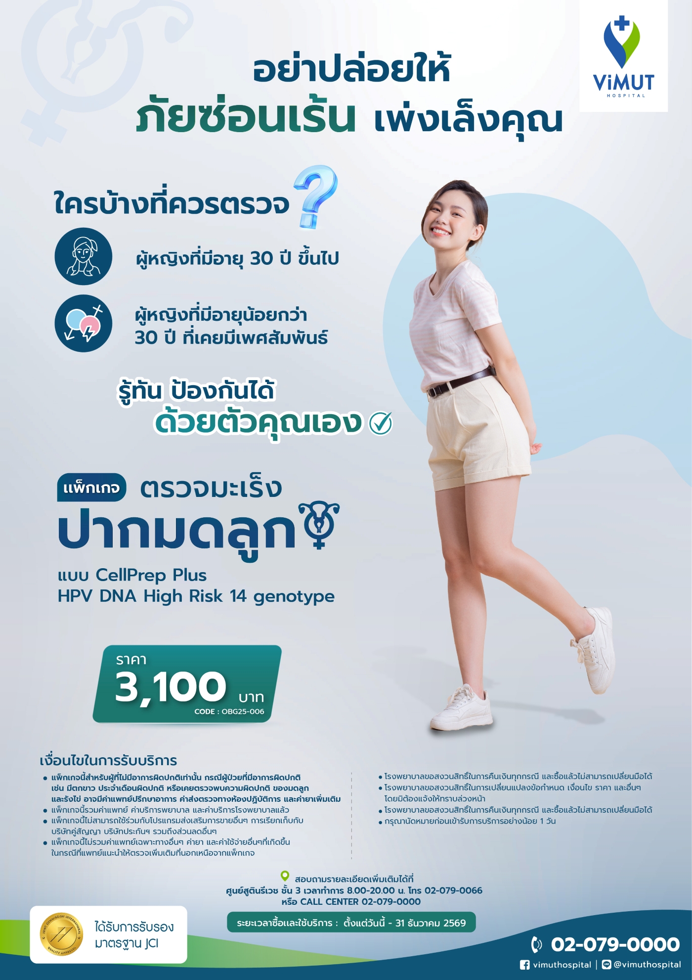 - สามารถวางแผนการรักษาได้ก่อนโรคลุกลาม - ไวรัส HPV (Human Papillomavirus) เป็นสาเหตุหลักของโรคมะเร็งปากมดลูก