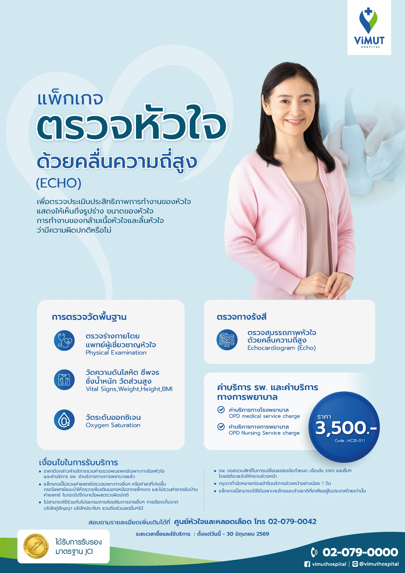 - สอบถามรายละเอียดเพิ่มเติมได้ที่ ศูนย์หัวใจ รพ.วิมุต โทร 02-079-0042 หรือ Call center 02-079-0000