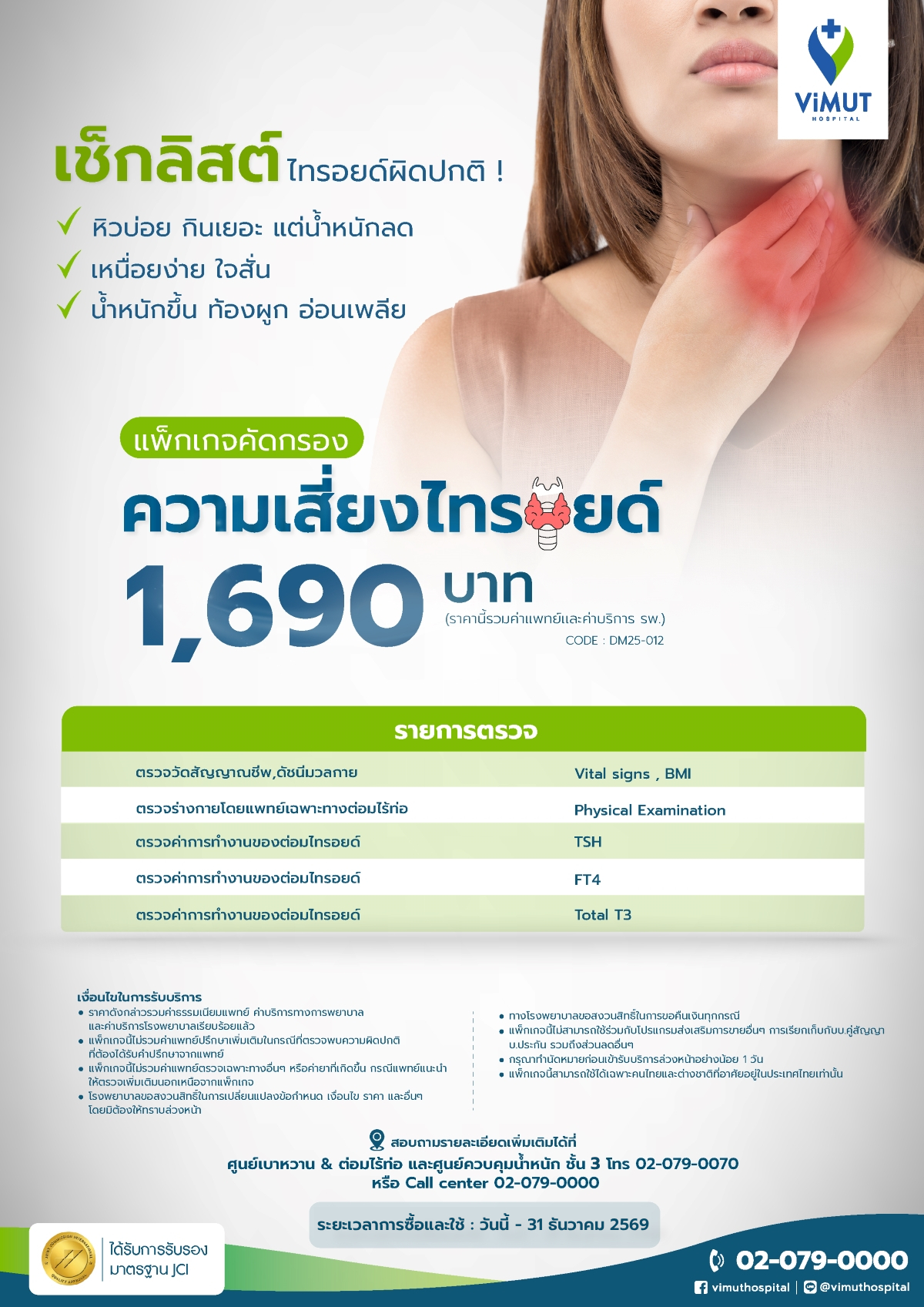 - สอบถามรายละเอียดเพิ่มเติมได้ที่ ศูนย์เบาหวาน ไทรอยด์ ต่อมไร้ท่อและควบคุมน้ำหนัก ชั้น 3 รพ.วิมุต โทร 02-079-0070